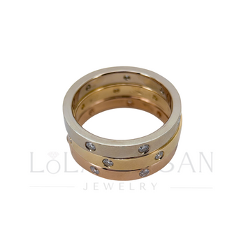 3mm wide 14K gold ring with 7 gemstones